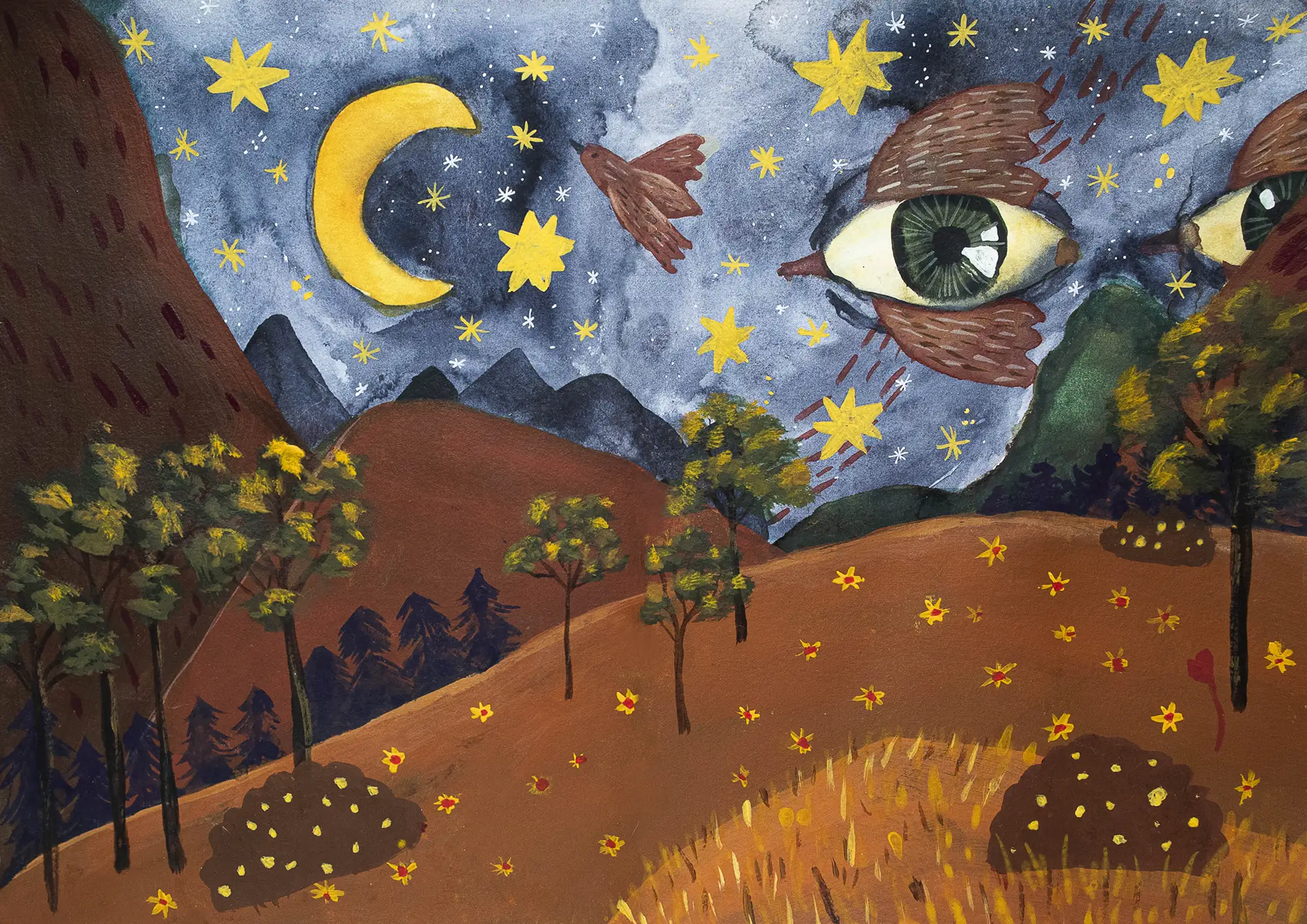 Wtedy przez okno zobaczyłam liska, który przez dłuższą chwilę patrzył na mnie. Jego spojrzenie dodało mi otuchy. Postanowiłam zatrzymać tę chwilę w rysunku i zapisać w nim myśl, która przyszła do mnie w tym momencie: „Jesteś na dobrej drodze”.